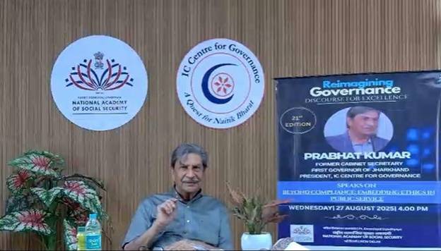 The Pandit Deendayal Upadhyaya National Academy of Social Security (PDUNASS) of the Employees’ Provident Fund Organisation (EPFO) hosted the 21st edition of Reimagining Governance: Discourse for Excellence (RGDE) today with Prabhat Kumar, Former Cabinet Secretary of India, First Governor of Jharkhand, President of the IC Centre for Governance, and Chancellor of Usha Martin University, Ranchi.
