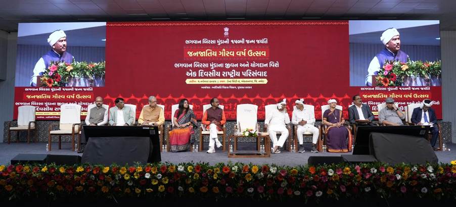 In Gujarat, a National Seminar on the Life, Struggle, and Contribution of Bhagwan Birsa Munda was jointly organized by the Department of Tribal Development and TRI, Gujarat, at Tent City-2, Ekta Nagar (Narmada District). The seminar, inaugurated by Hon’ble Minister Shri P.C. Baranda, witnessed participation from over 600 professors, academicians, and tribal leaders, reflecting both academic and cultural solidarity.