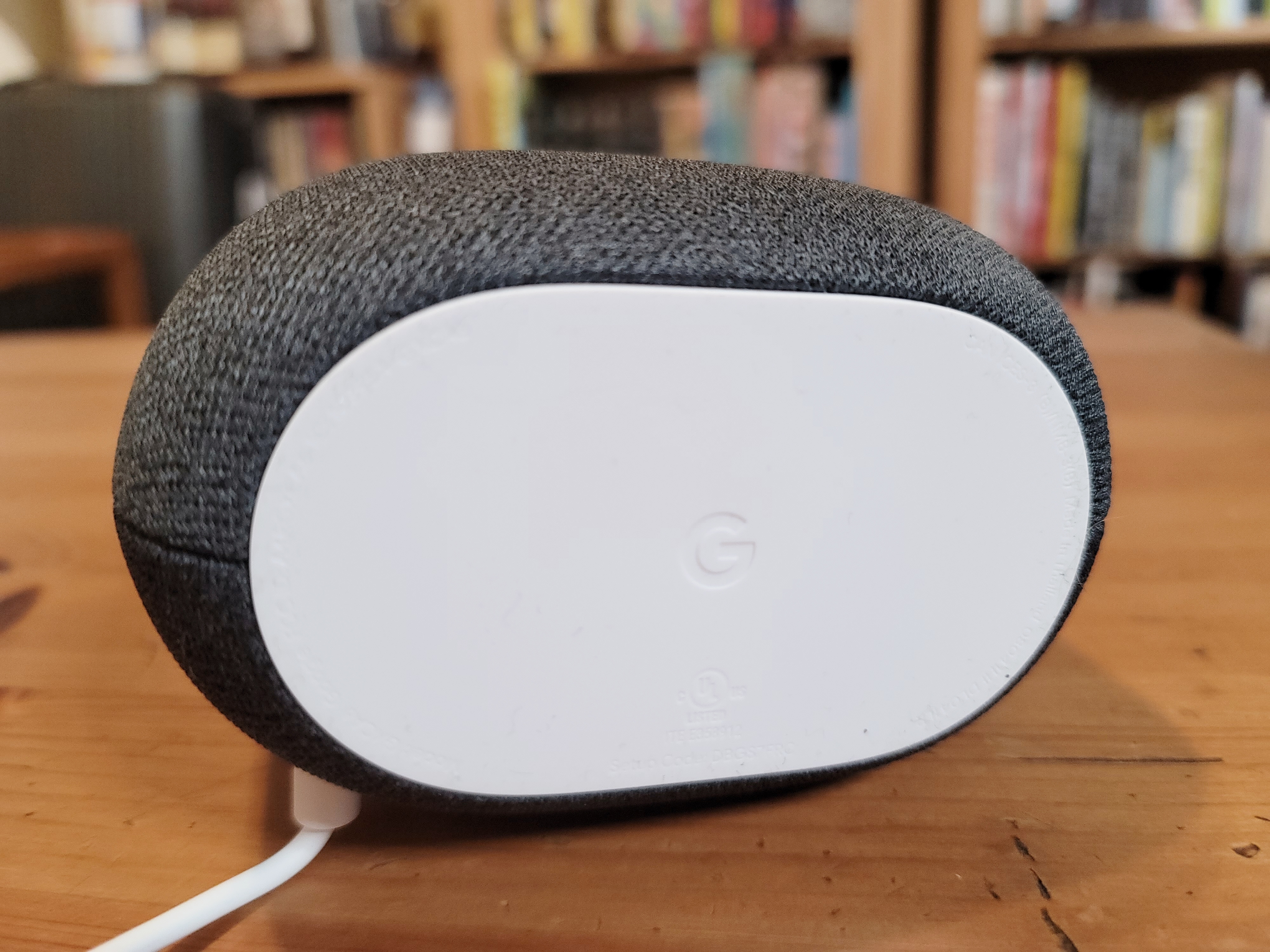 There are five colors: white (chalk), black and Sage, Sand and Sky — all pastels. Odds are pretty good you’ll find one that fits your home. Google sent me a black one, which is likely what I would have chosen myself. And bonus points for the fact that the fabric is made from recycled water bottles, like the Nest Mini before it.