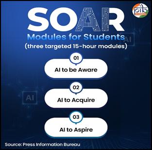 - Skilling for AI Readiness (SOAR) targets school students from class 6 to class 12 and educators to enable a future-ready India in this increasingly digital world.